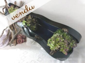 Ancien étui à violon 3/4, de 73 cm de long en bois teinté de noir. Les 3 fermoirs ceux des deux cotés set le central sont opérationnels, mais pas de clefs. La anse en cuir est en bon état. Sur la partie bombée de la partie avant , il y a une petite latte de bois qui se soulève très très légèrement. Je ne sais même pas si c’est visible sur les photos. L’intérieur est en feutrine bleu, usagée, et un peu poussiéreuse.. mais un étui à violon comme objet de décoration, quel charme et quelle originalité !
