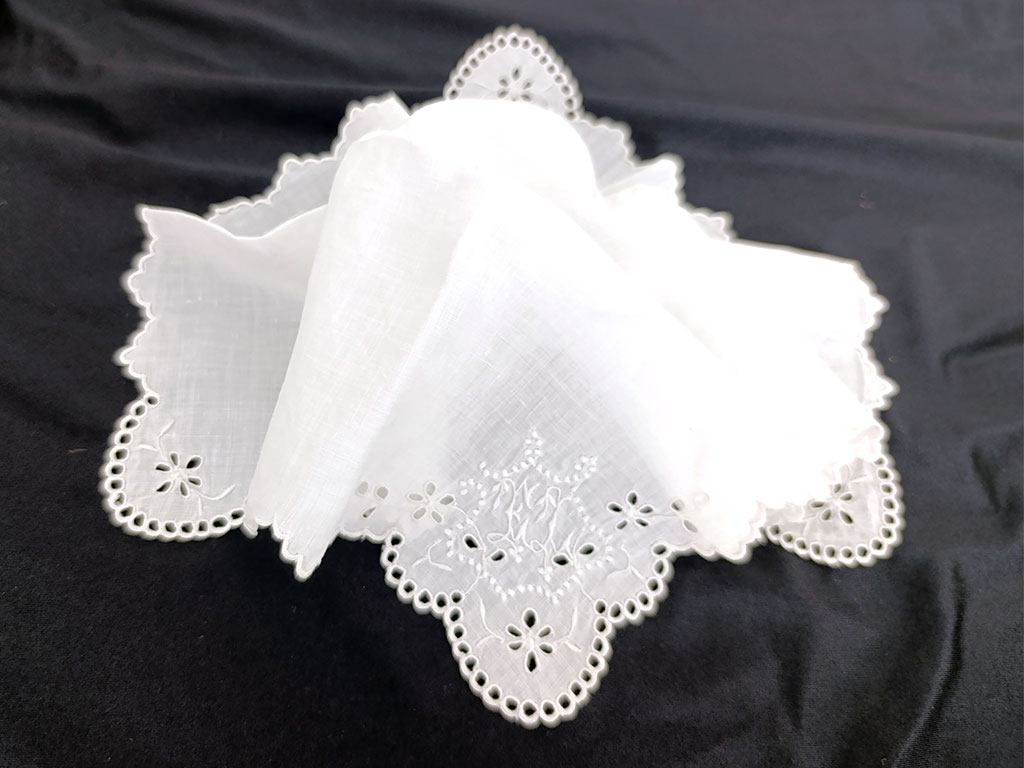 Ancien mouchoir mariée, broderies ajourées et monogrammes EL