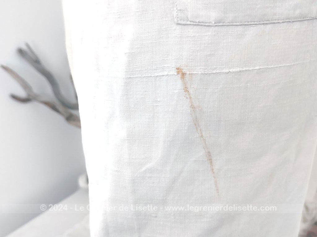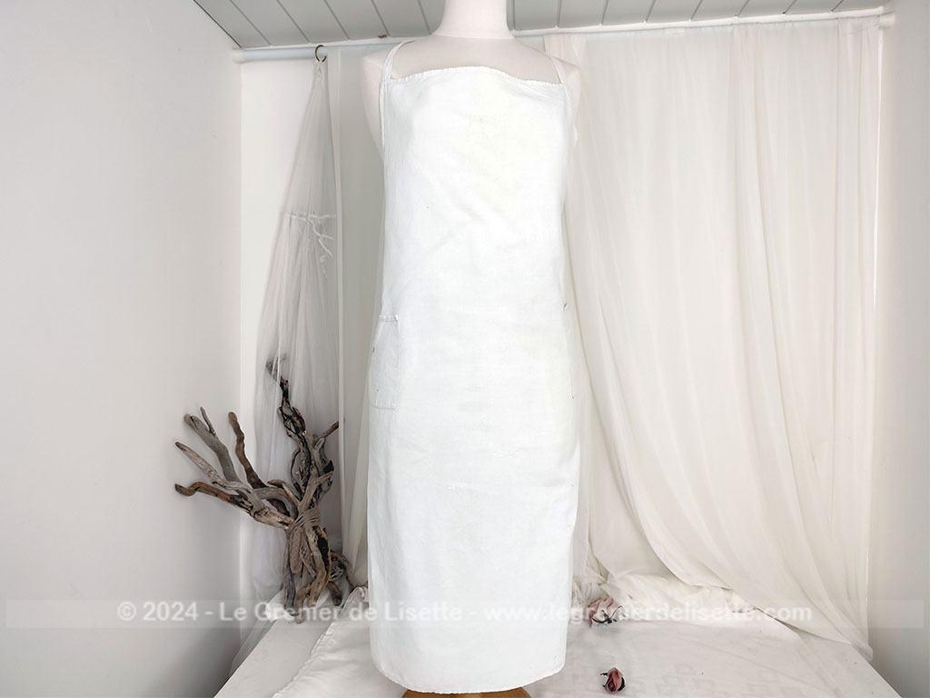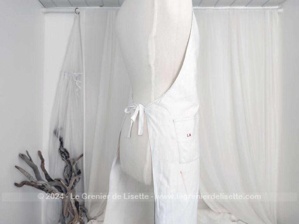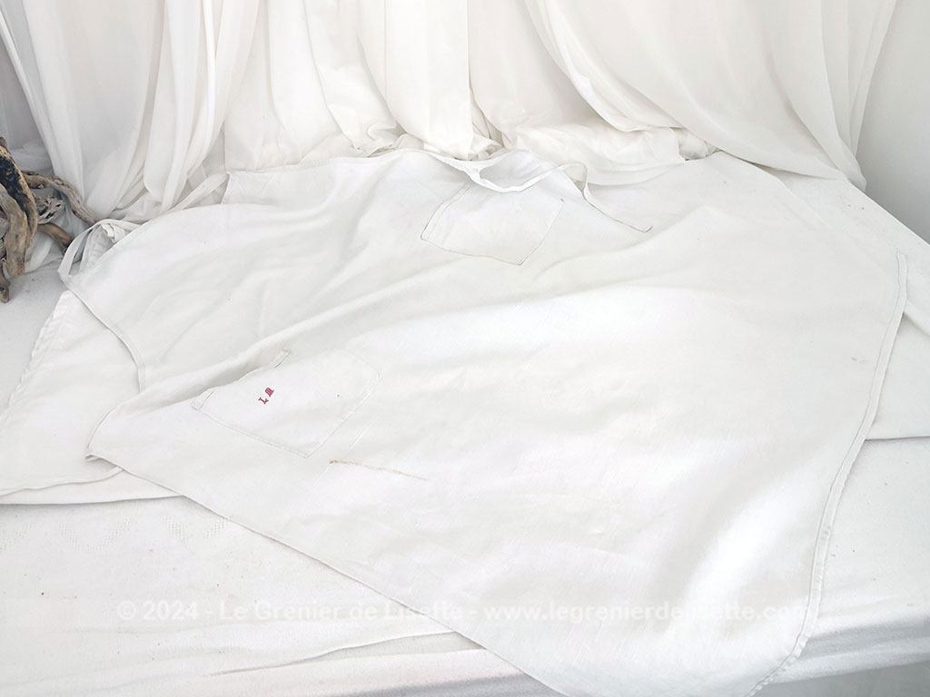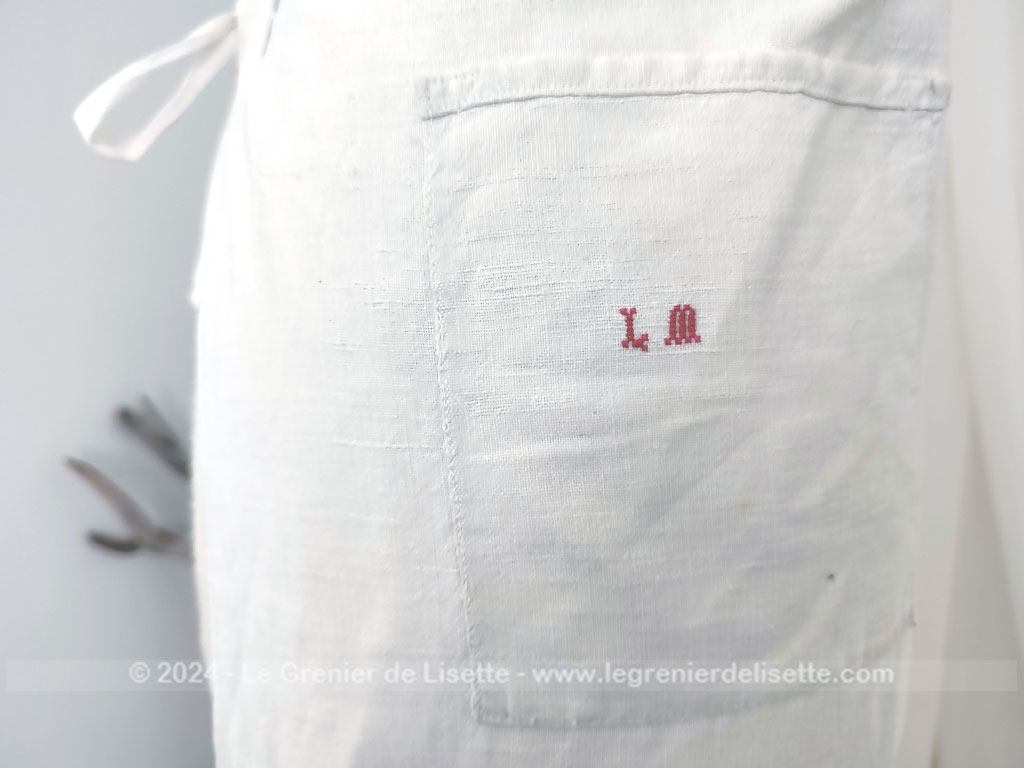 Voici un charmant tablier de cuisine au charme d’antan, confectionné à la main dans un drap ancien orné d’une grande poche brodée à la main des initiales « LM ».