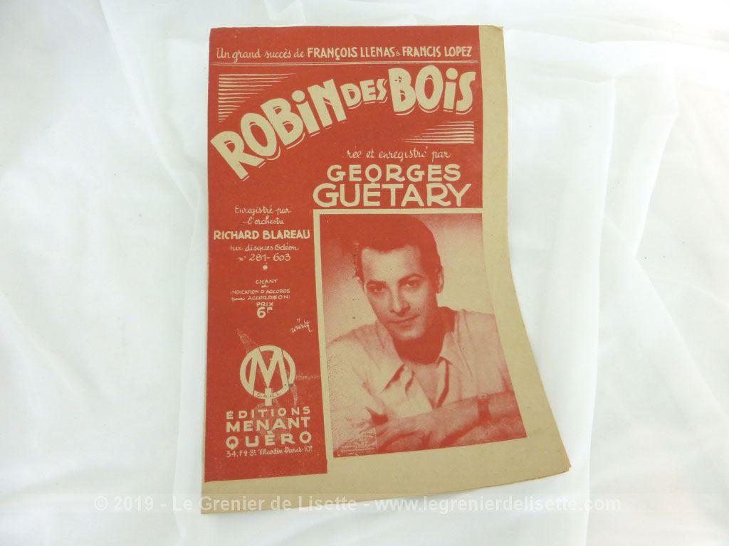 Ancienne partition « Robin des Bois » par Georges Guetary
