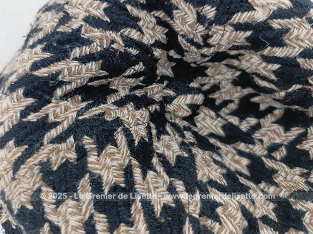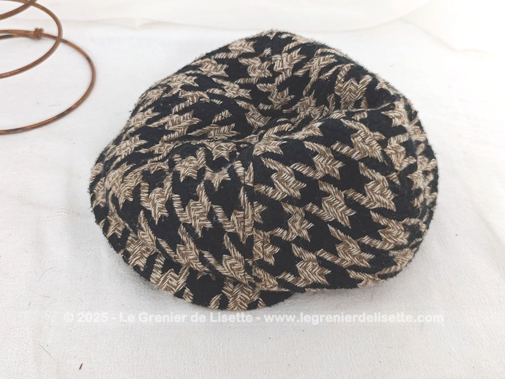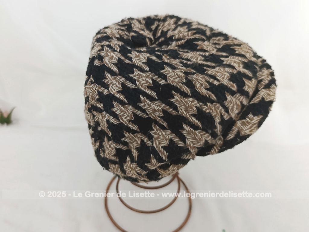 Voici une casquette au look vintage en tissus laine mélangée avec un motif « Pied de Coq » noir et beige, pour un tour de tête standard, car il y a sur le contour arrière une partie arrière élastiquée.