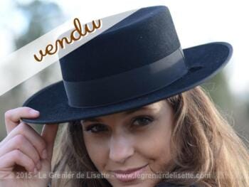 Chapeau original et typique d’Andalousie. L’étiquette intérieure, confirme bien l’origine de Palma de Majorque. Une bande marron ceint l’intérieur du chapeau, et un noeud blanc indique l’arrière du chapeau. Une déchirure hélas, coupe presque en deux cette bande marron, mais n’est visible que sur l’intérieur du chapeau. Un bande noire (3.5 cm) encercle la partie extérieure du chapeau (9 cm) . Et pourquoi une femme ne pourrait-elle pas se prendre pour Zorro ?