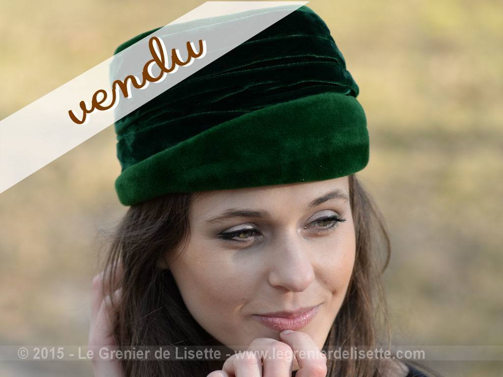 Chapeau en beau velours ras, marqué par des plis. Tour de tête 54/55 cm