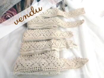 Cinq coupons de la même dentelle faite à la main et de couleur écrue. Lot K