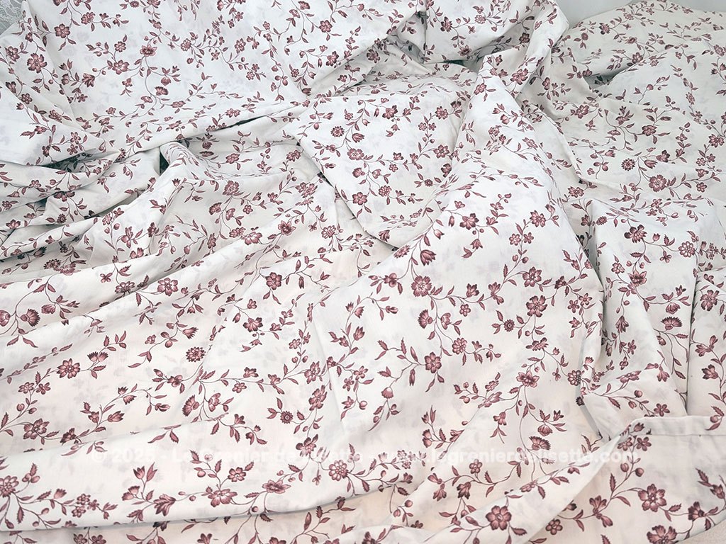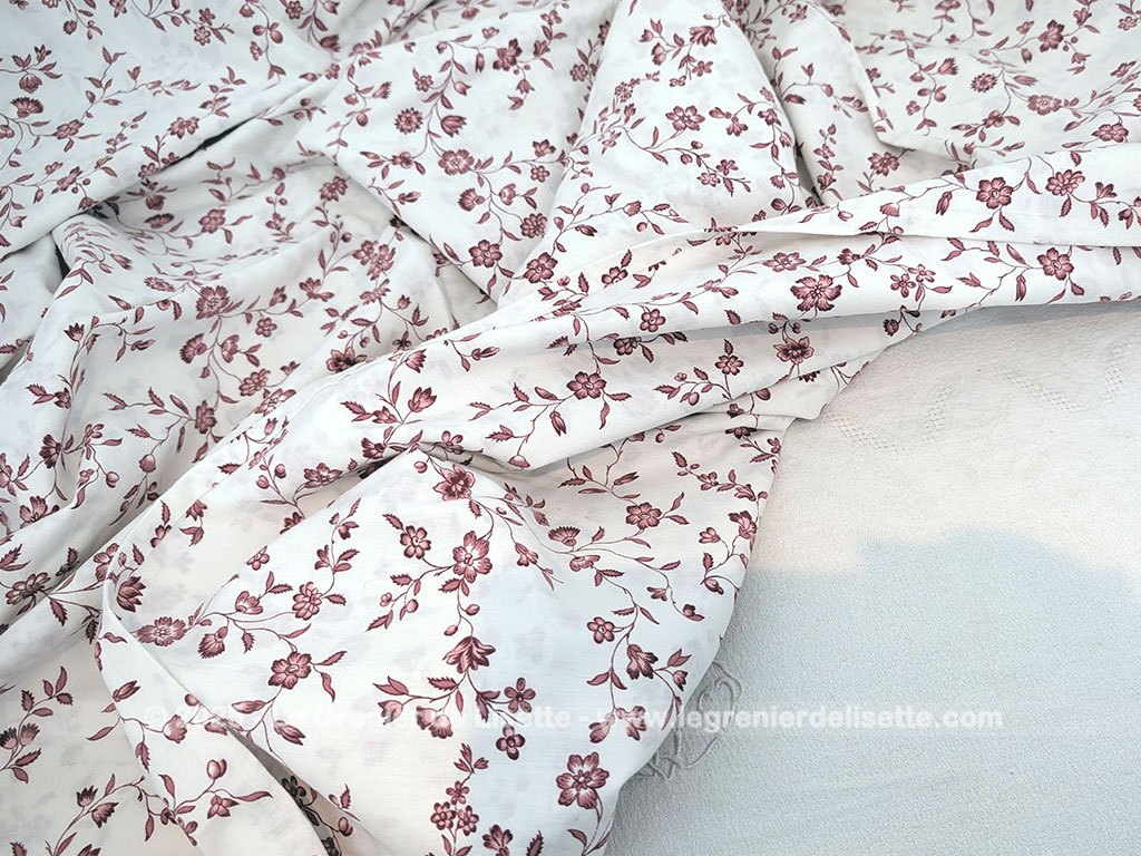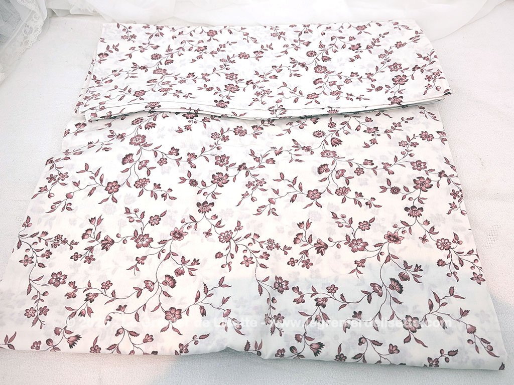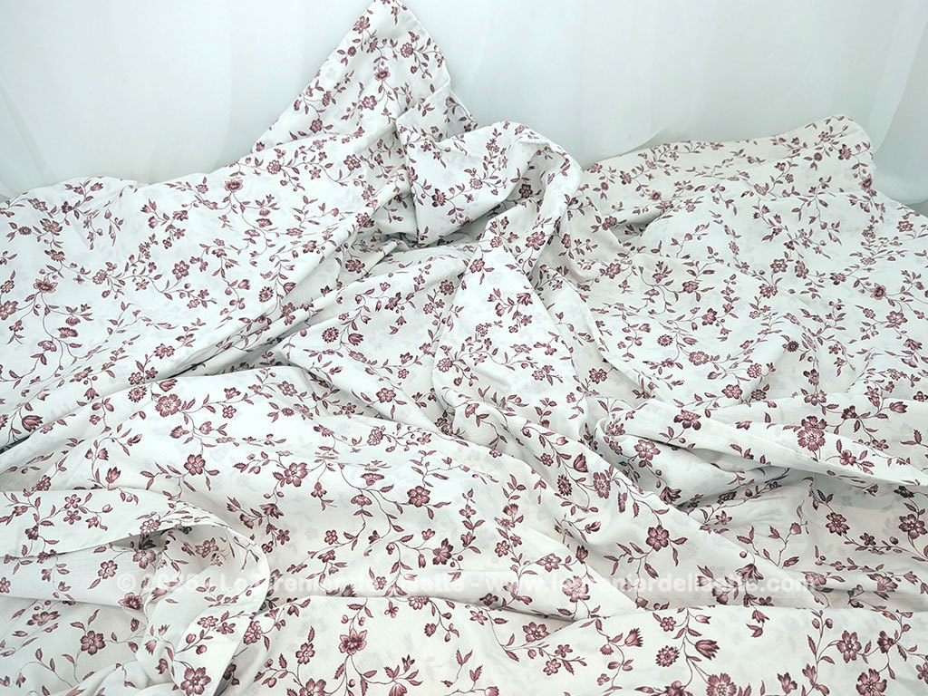 Voici un coupon de tissus housse de couette de 145 x 205 cm, couleur ivoire décoré de guirlandes et ramures de fleurs couleurs bordeaux sur les deux faces et fermetures par clips plastique.