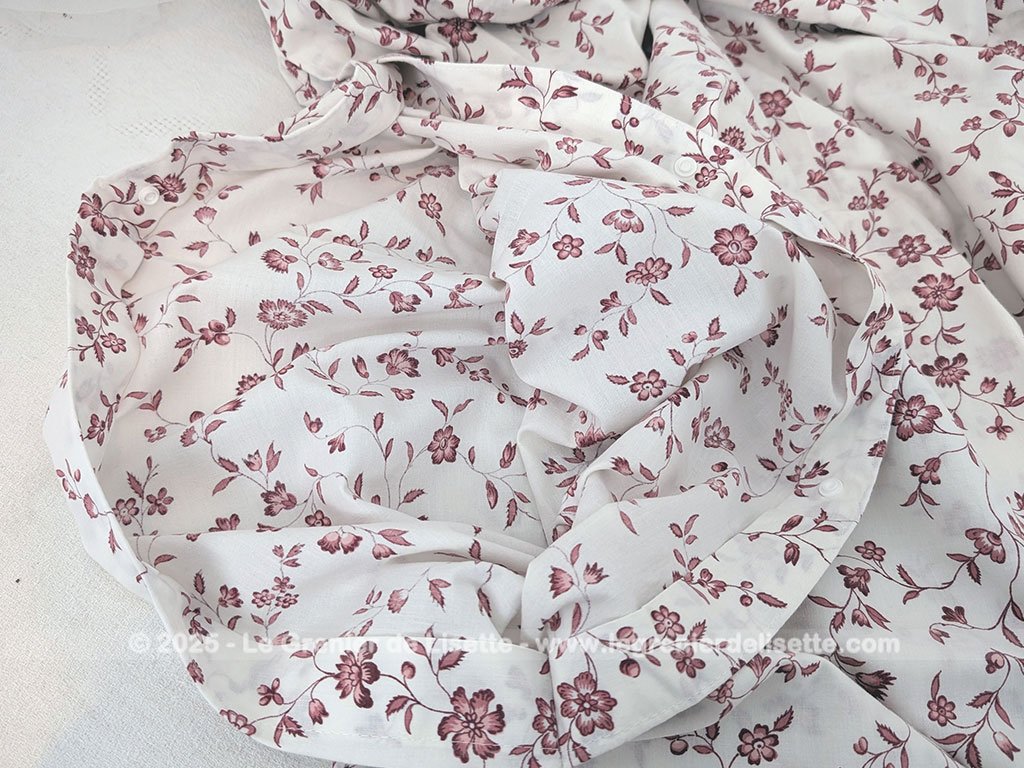 Voici un coupon de tissus housse de couette de 205 x 145 cm, avec sur deux faces le même tissus. Sur ces deux faces, couleur ivoire, on retrouve le même dessin représentant des guirlandes et ramures de fleurs couleurs bordeaux dans l’esprit Liberty. Le bas se ferme par clips plastique. Modèle vintage, le tissus en coton porte l’étiquette de la marque « Ikéa ». Une petite incrustation en dentelle décore un angle de la couette. Alors, qu’allez vous choisir entre une utilisation en coupon pour des idées de réalisations shabby ou faire revivre cette élégante housse de couette ?