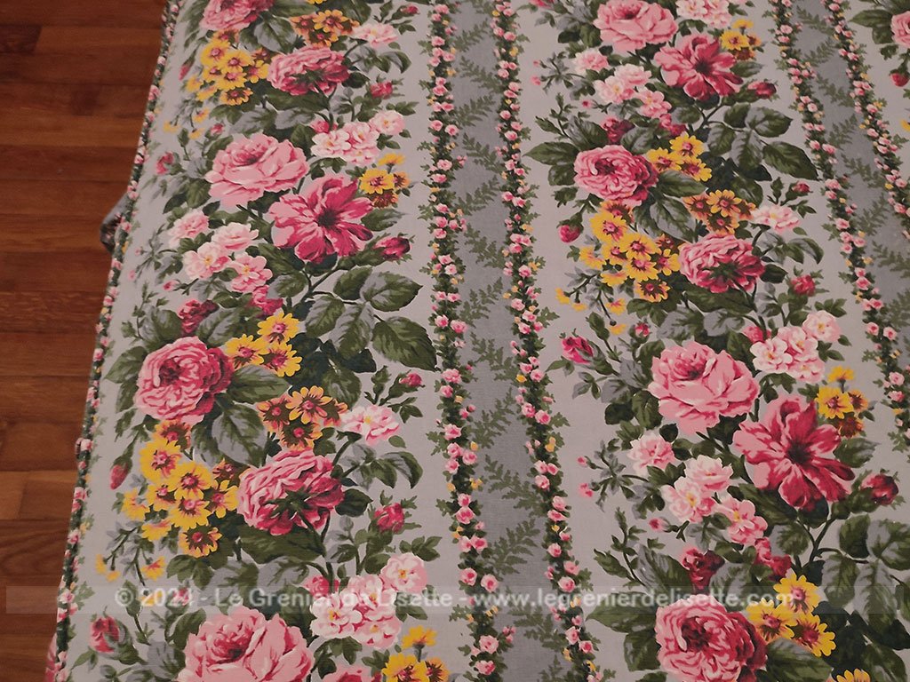 Ancien couvre-lit tissus iris roses shabby