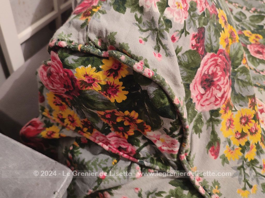 La qualité du tissage et la robustesse de ce coton ont traversé des décennies sans perdre de leur éclat. La confection main est soignée, notamment au niveau du passepoil de finition qui structure l’ensemble. L’état est très beau et les couleurs sont restées bien vives. C’est un couvre-lit typique du style cottage des années 70-80, idéale pour apporter une atmosphère cosy et authentique à une chambre.