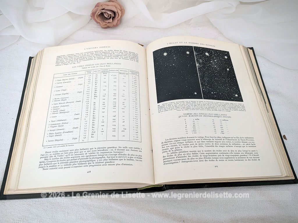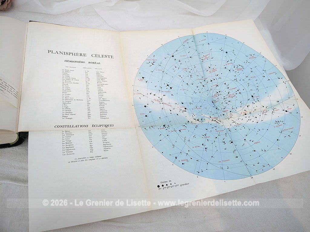 Voici l’ouvrage encyclopédique d »Astronomie Populaire de chez Camille Flammarion avec l’édition de 1955 de 610 pages explorant l’univers à travers de nombreuses images et un grand planisphère céleste dépliant en couleurs, idéal pour tous les passionnés du ciel.