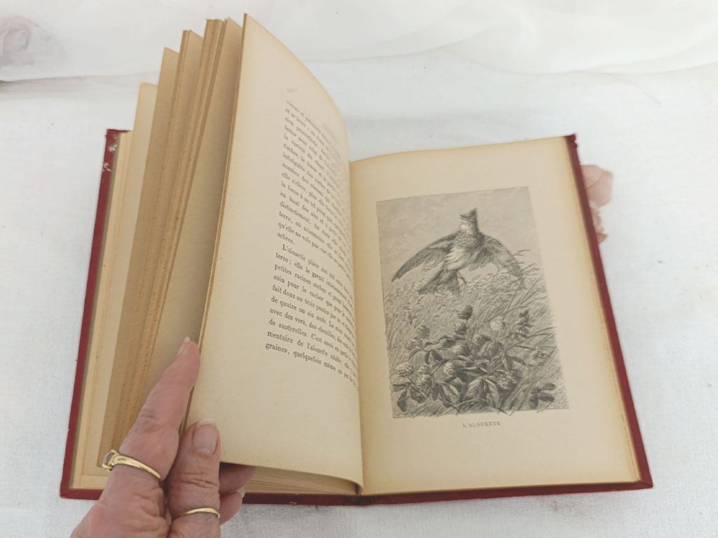 Ce livre, a été offert comme récompense pour un Prix de Dessin de la Ville de Marseille par l’Ecole Communale des Garçons des Catalans en date du 31 juillet 1901. Avec ses illustrations raffinées, son papier ancien et sa couverture d’époque, c’est une pièce idéale pour les amateurs de livres illustrés, ou tout simplement les amoureux de la nature et des oiseaux. La tranche est à peine usée et on ne dirait vraiment pas que ce livre est centenaire.
