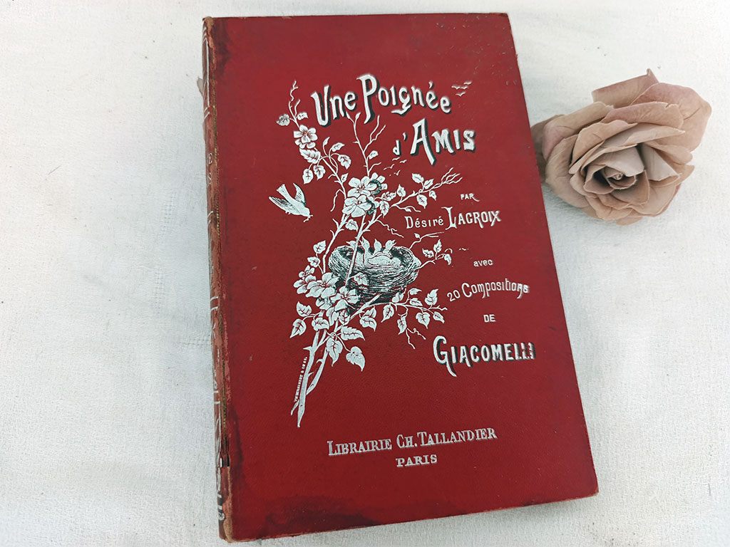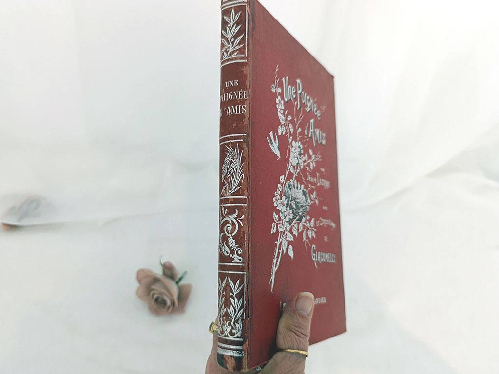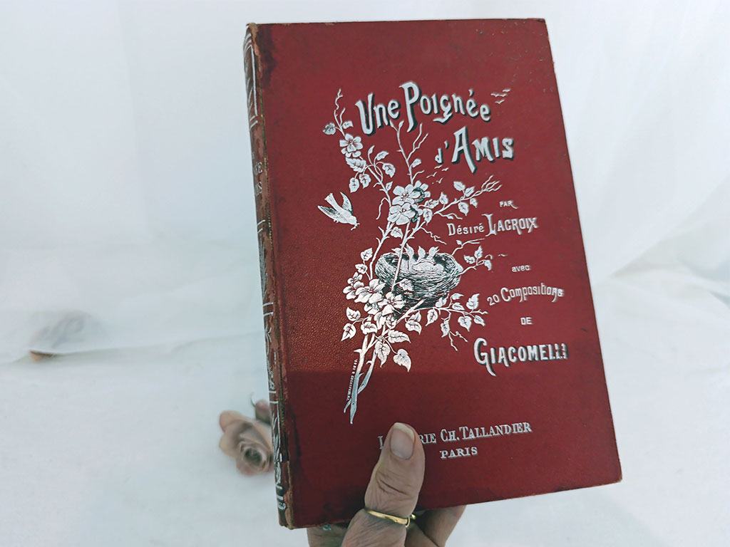 Voici le livre « Une poignée d’amis » de Désiré Lacroix. Superbe ouvrage ancien illustré par Hector Giacomelli, célèbre pour ses aquarelles d’oiseaux et de nature. Édité vers 1900, ce livre mêle prose délicate et copies de compositions sur bois, dans un style naturaliste, tendre et poétique, célébrant par des moments simples les petits êtres qui peuplent nos paysages: les oiseaux,