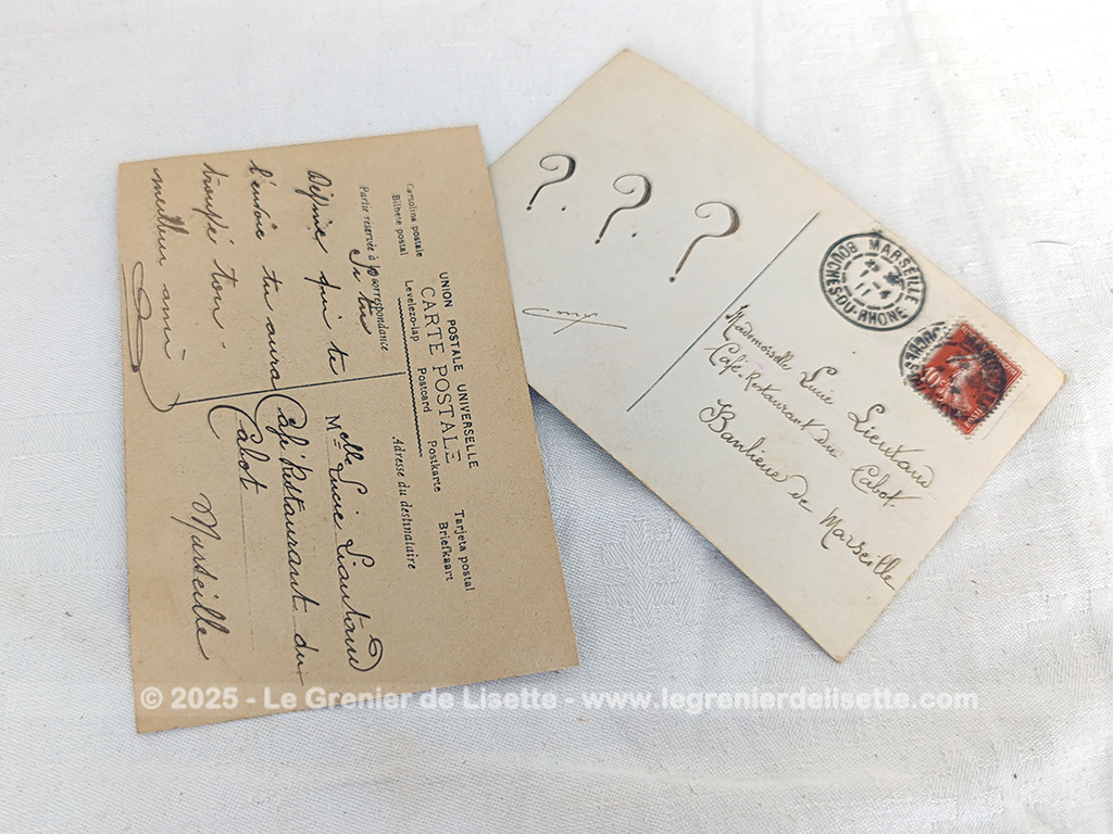 Voici un lot de 2 cartes postales anciennes pour fêter le 1er Avril, datant du tout début du siècle dernier. Ces cartes sont toutes adressées à la même jeune fille. Elle représentant sur papier glacé la photo d’homme avec des poissons. Ah, ces hommes avec ces grandes moustaches, tout un art de l’époque !  Au bas de chaque carte,  un petit message. Au dos, de petits mots de tendresse écrits à la plume à l’encre sépia ! Ces cartes datent de la même période, mais une seule porte un timbre oblitéré et daté de 1911.  De belles cartes centenaires.