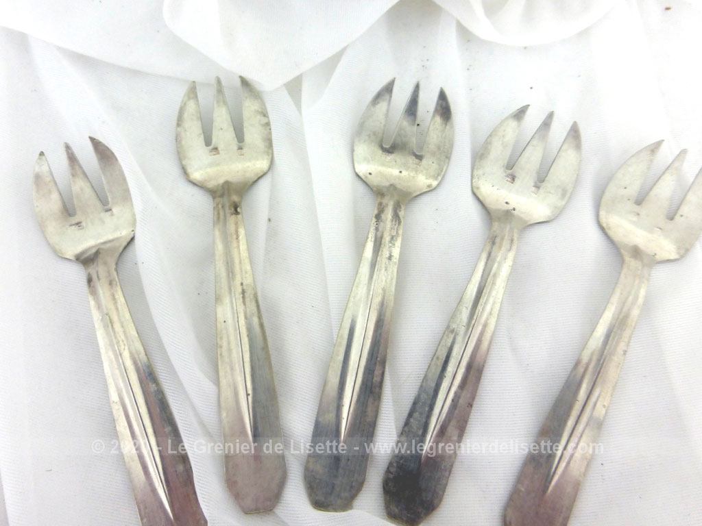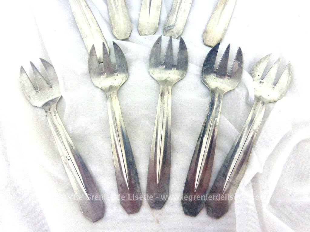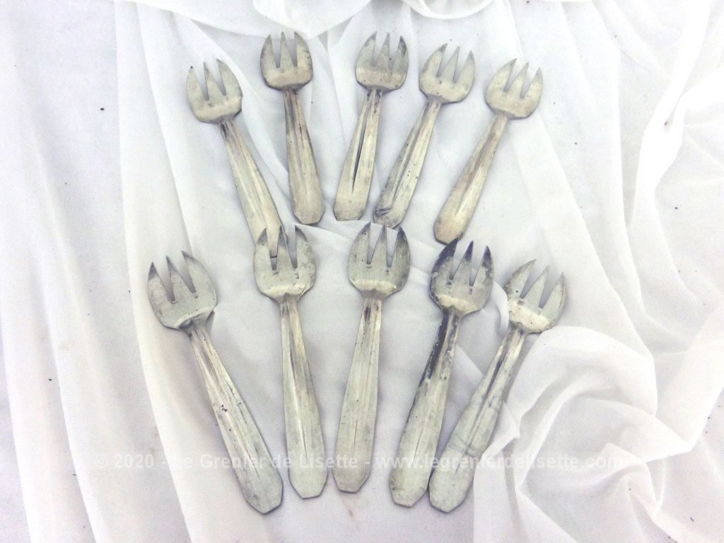 Lot de 10 fourchettes vintages métal argenté à dessert ou huitres