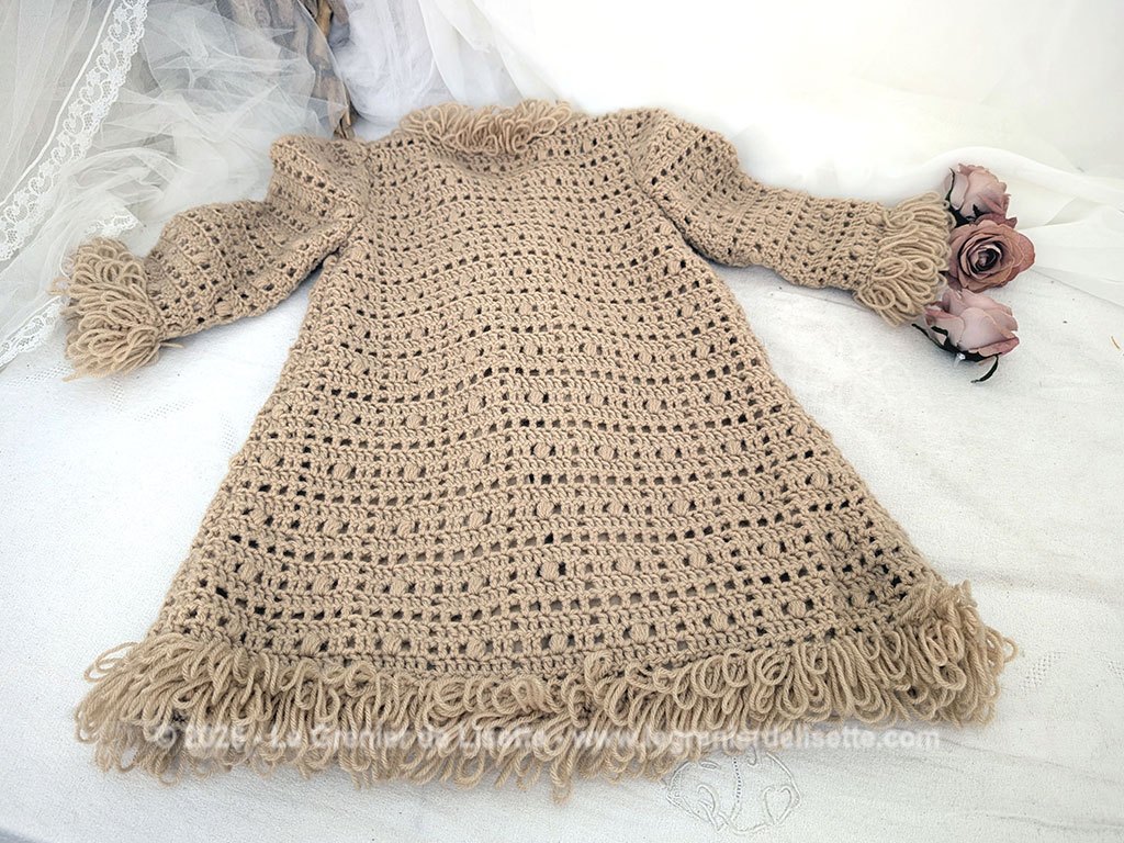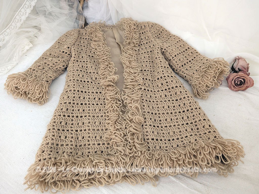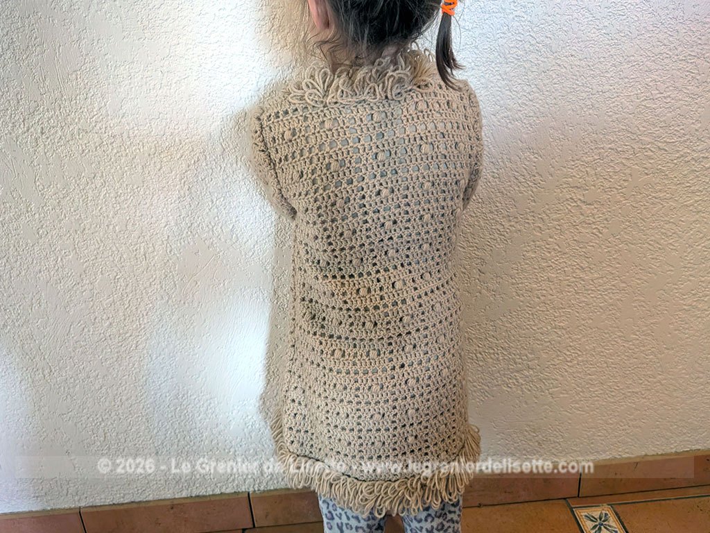 Manteau enfant crochet style seventies franges bouclées taille 6 ans