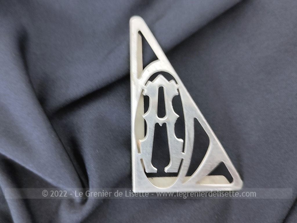 En triangle, voici un monogramme A en métal à caler ou insérer dans un angle gauche d’une de vos créations. Il mesure 6 x 3.8 x 7 cm . De couleur métal argenté, il est prêt à décorer et mettre en valeur l’angle d’un revers de sac, portefeuille, objet en cuir, carton ou autres idées de création ! Pour caler, on découvre au dos sur 2 pans du triangle, un retour de presque 3 mm (voir photos). A vous de choisir où poser cette lettre A que vous affectionnez tant !