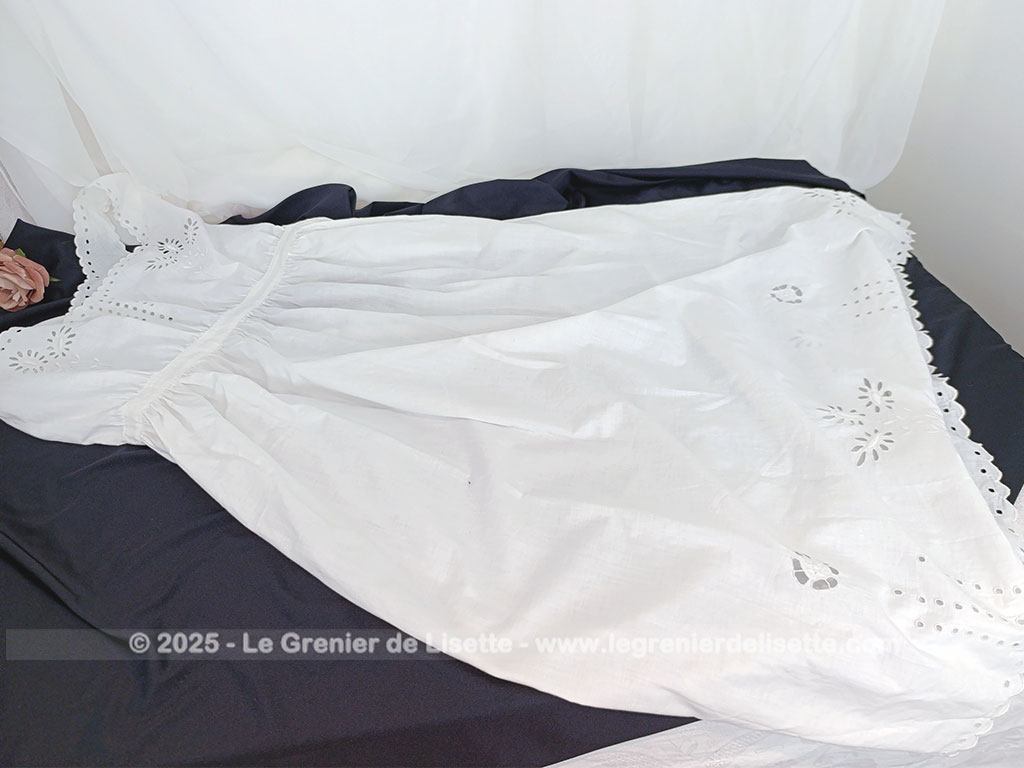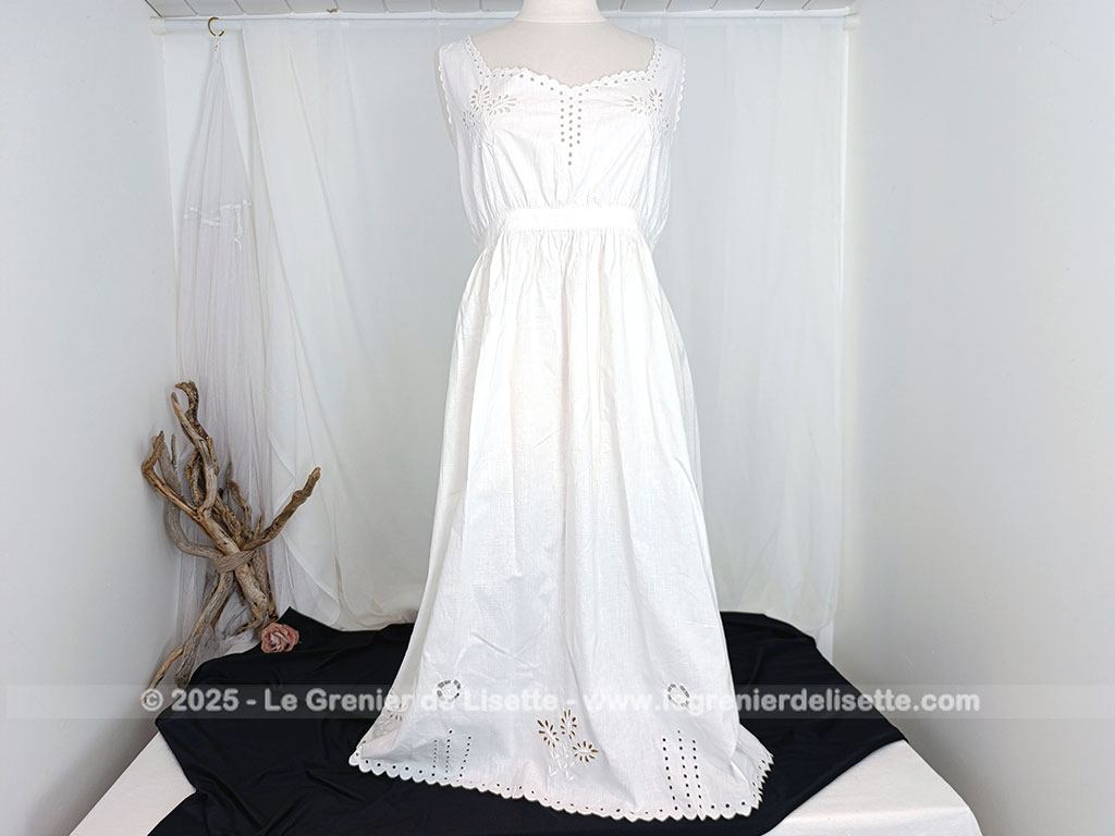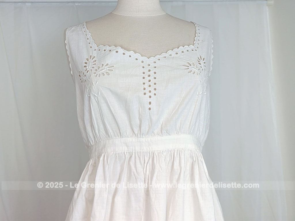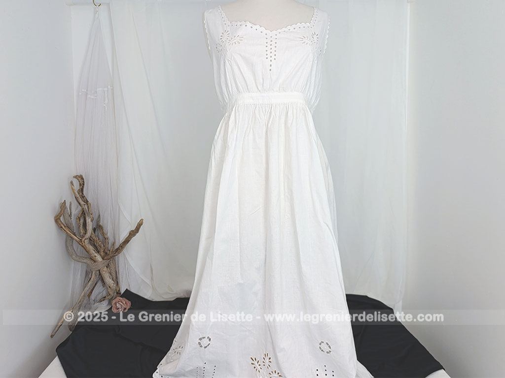 Taille 36/38,  voici un modèle vraiment rétro avec cette sous-robe, sur-corset ou chemise de corps du siècle dernier pour devenir une belle robe aujourd’hui avec sa taille cintrée et ses broderies ajourées.