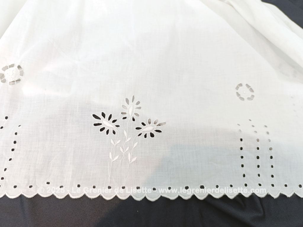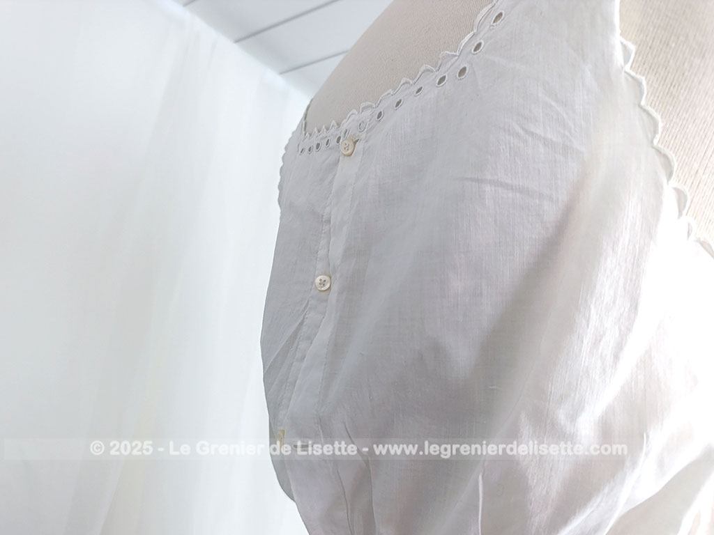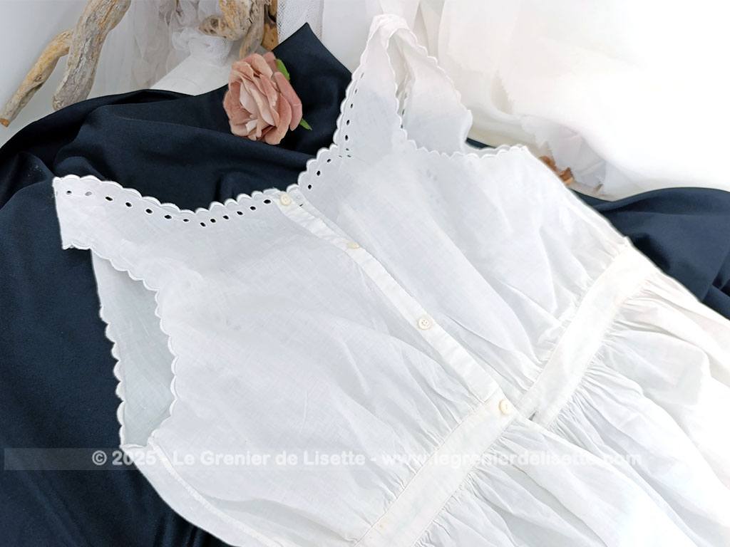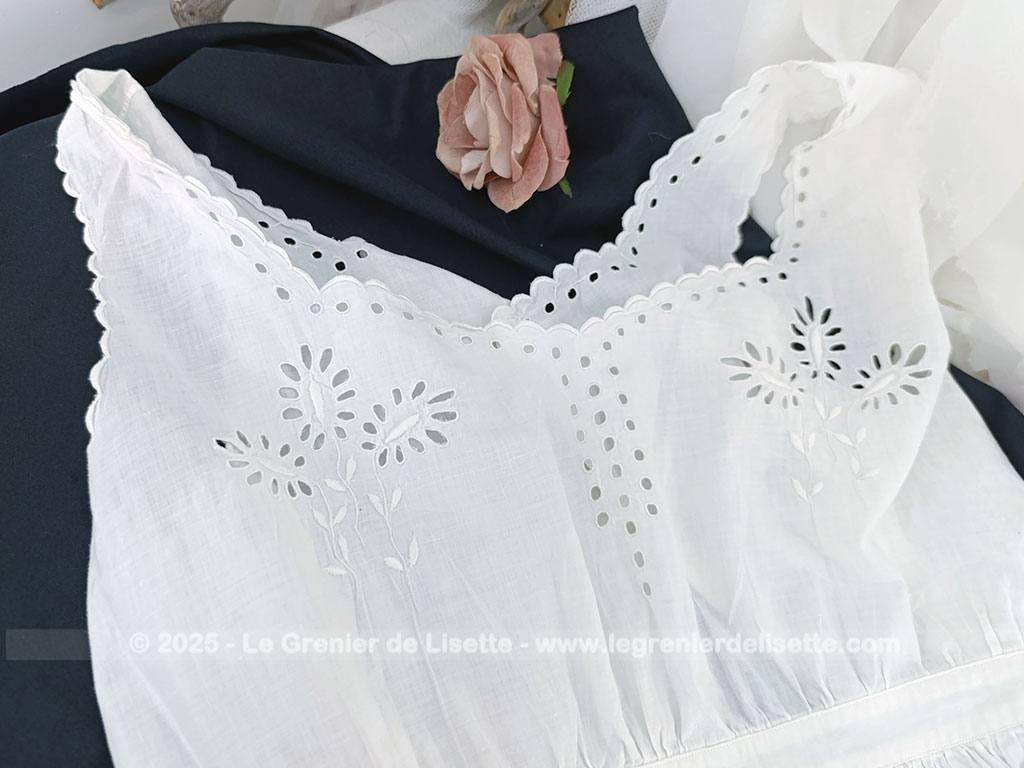Taille 36/38,  voici un modèle vraiment rétro avec cette sous-robe, sur-corset ou chemise de corps du siècle dernier pour devenir une belle robe aujourd’hui avec sa taille cintrée et ses broderies ajourées.